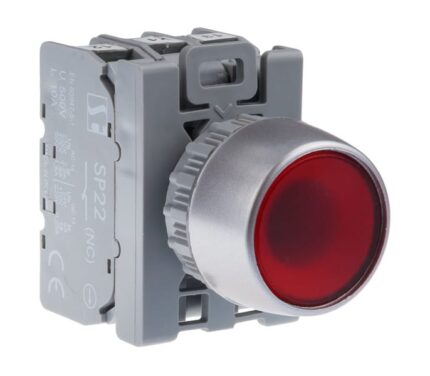 Кнопки с подсветкой типа SP22 устанавливаются в нормализованные отверстия с диаметром 22.3 мм, выполненных в панелях (пультах) управление сигнализации или непосредственно в корпусах машин и оборудования. Части кнопок, выступающие над панелью имеют матовое никелевое покрытие.