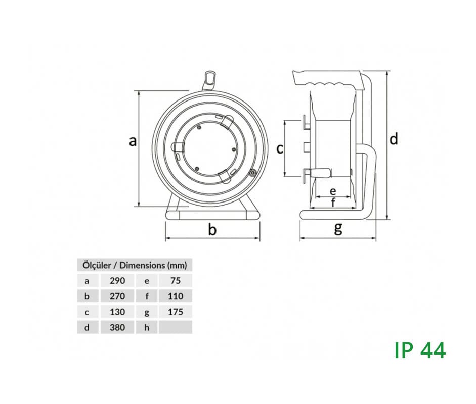 Катушка переносная BM2-3000-0000 металлическая диаметр 290 мм, без розеток с 2 отверстиями в корпусе на металлической стойке