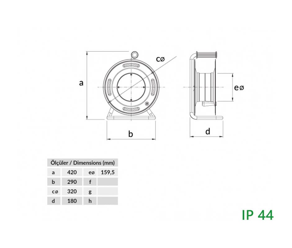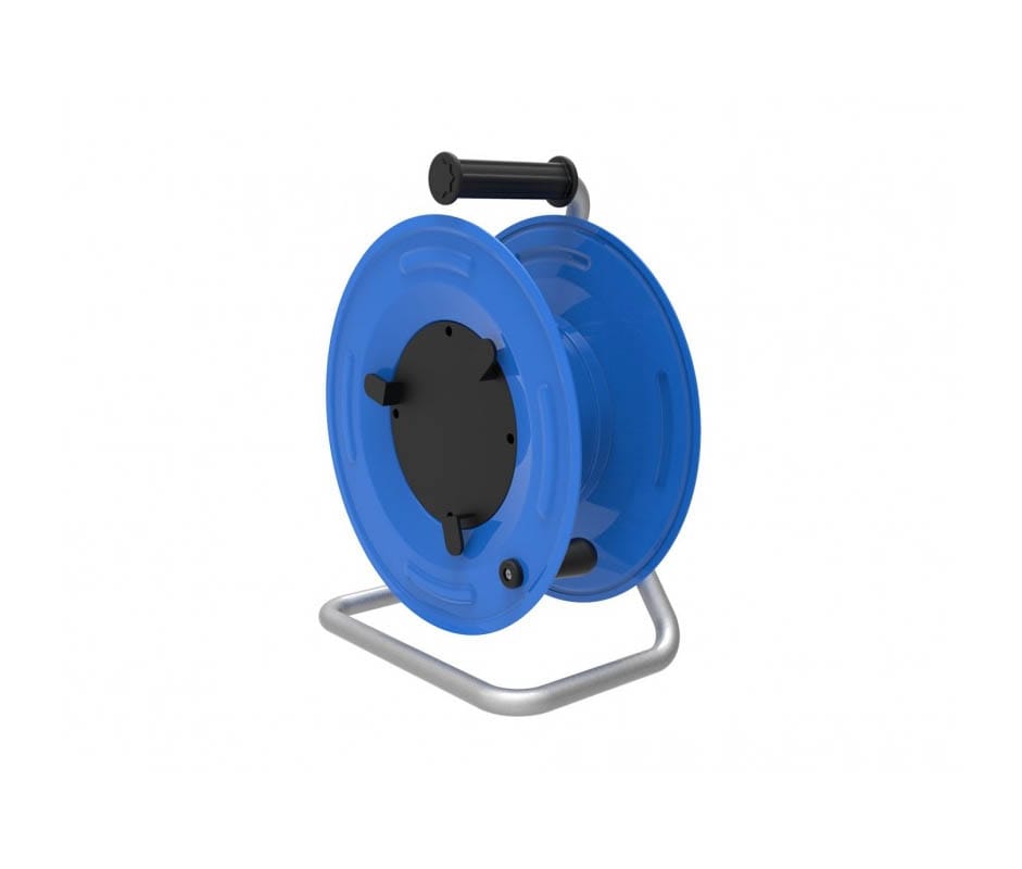 Катушка переносная BM3-4102-0000 металлическая, диаметр 320 мм, без розеток с 2 заглушками, на металлической стойке IP44. В комплекте без кабеля, максимальная установочная длина 50 м, при сечении 3×2,5 мм