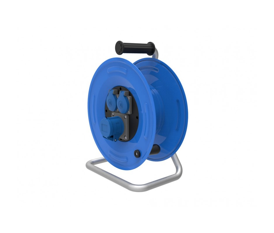 Катушка переносная BM3-4108-2030 металлическая, диаметр 320 мм, с розетками 1/16A (2P+E, 220V)*2, 3/16A (2P+E, 220V)*1 на металлической стойке, IP 44. В комплекте без кабеля, максимальная установочная длина 50 м, при сечении 3×2,5 мм