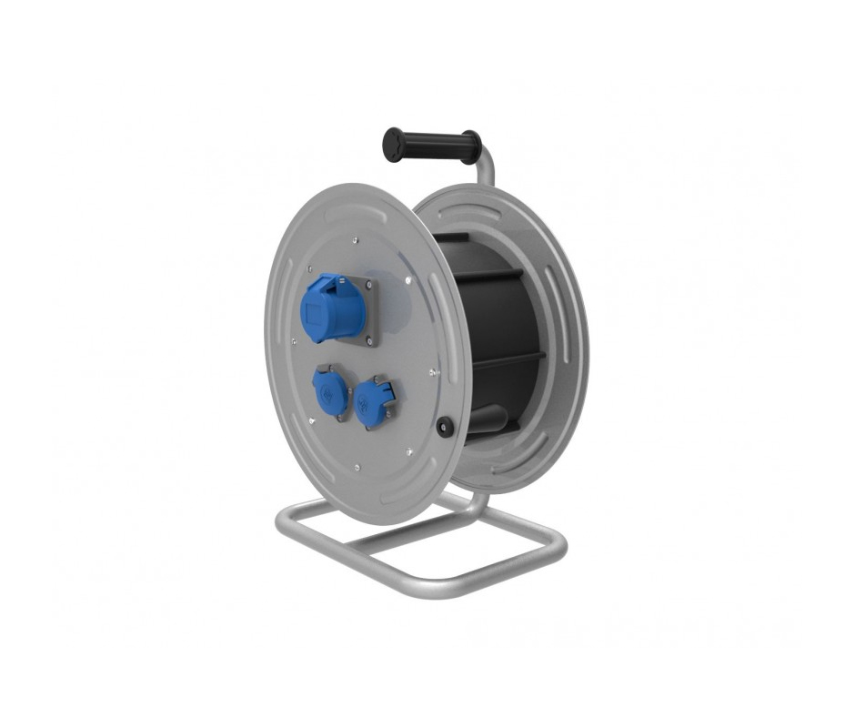 Катушка переносная BM4-5203-1080 металлическая, диаметр 370 мм, с розетками 1/16A (2P+E, 220V)*2, 3/16A (2P+E, 220V)*1 на металлической стойке, IP 44. В комплекте без кабеля, максимальная установочная длина 40 м, при сечении 5×2,5 мм