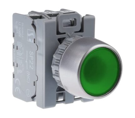 Кнопка управления SP22-AKLz-10-220-LED зелёная, без а/возврата, с утопленной пуговкой, светодиод 220V, (1н.о.), 10A, IP65
