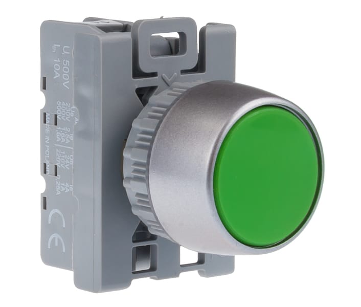 Кнопка управления SP22-AKz-01 зелёная, без а/возврата, с утоплённой пуговкой, без подсветки, (1н.з.), 10A, IP65