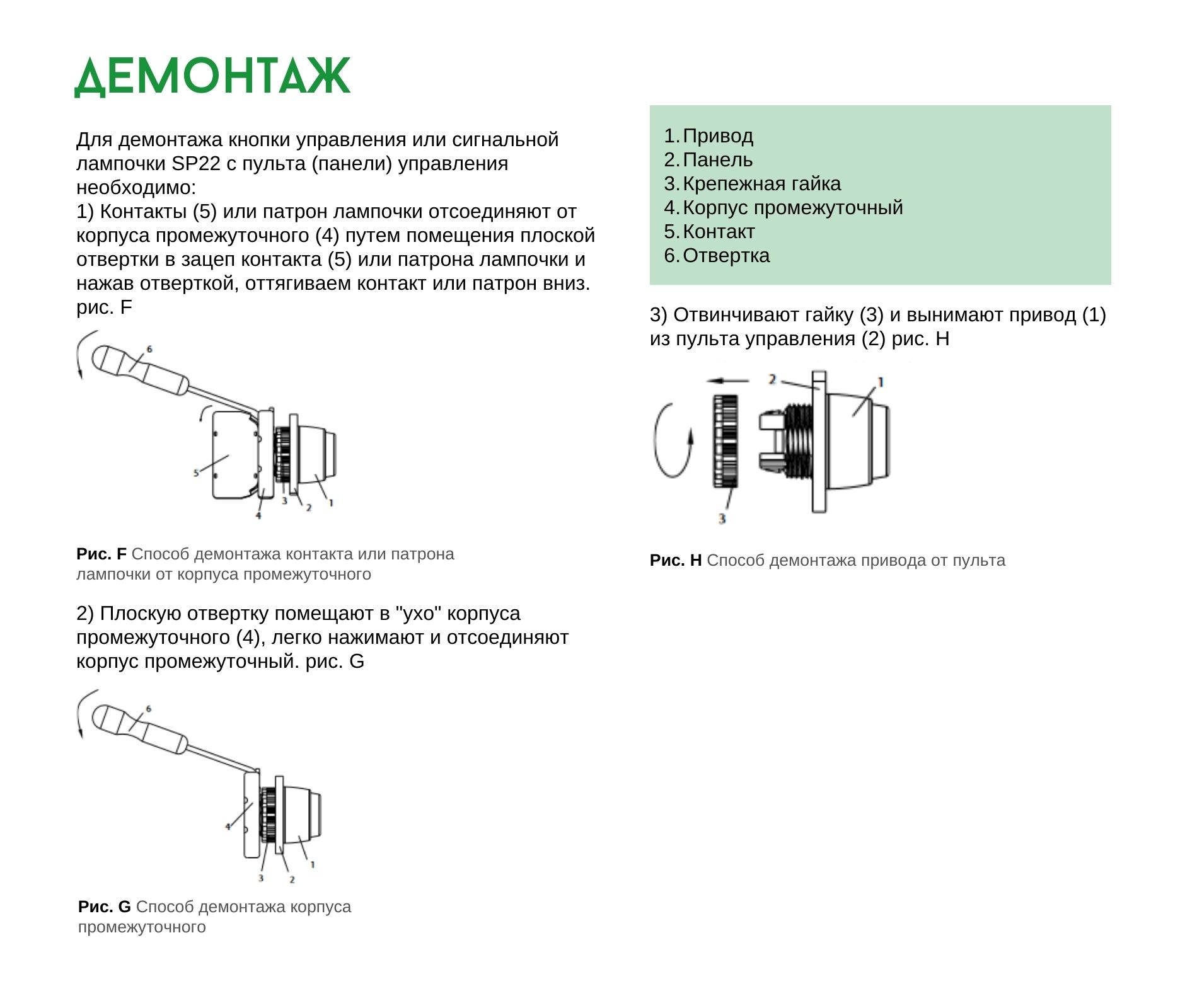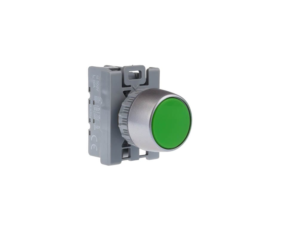 Кнопка управления SP22-AKz-20 зелёная, без а/возврата, с утопленной пуговкой, без подсветки, (2н.о.), 10A, IP65