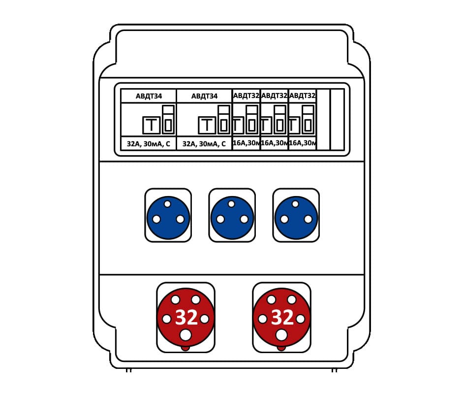 Бокс комбинированный ROS 16 AB/CFI/EK-298 с разъемами и устройствами защиты ROS 16/Z*1, IEN 3253*2, VZ 16S*3, MAD22-6-032-C-30*2, АВДТ 32 С16*3, IP44