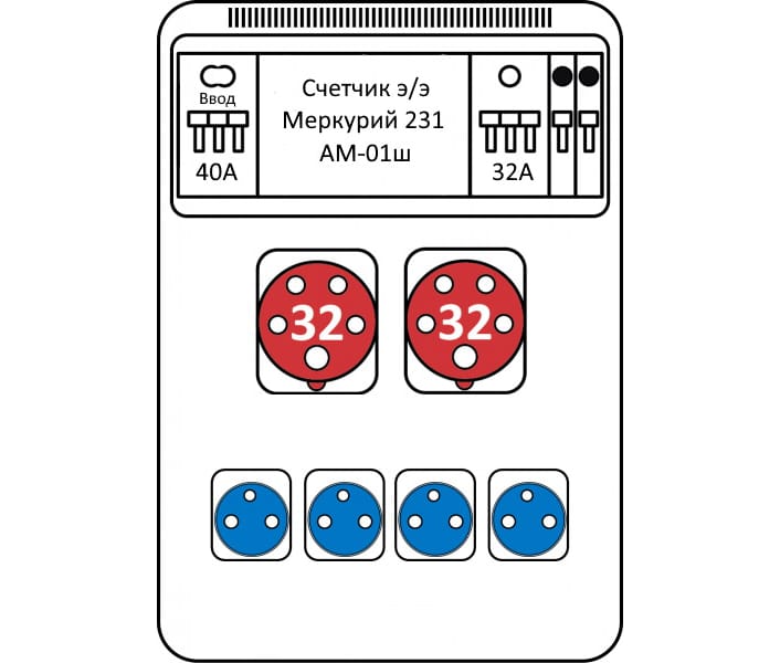 Бокс комбинированный ROS 16 AB/CI-055 с разъемами и устройствами защиты 3952sz*1, IEN 3253*2, VZ 16 S*4, PR63 C40/ME*1, PR63 C32/ME*1, PR61 C16/ME*2, Меркурий 231 AM-01ш*1, IVN 3253*1, IP44