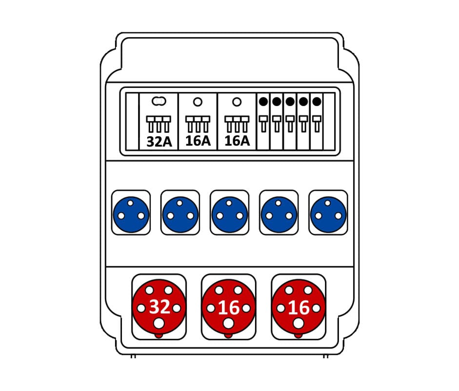 Бокс комбинированный ROS 16 AS/CI-377 с разъемами и устройствами защиты ROS 16/Z*1, IEN 3253*1, IEN 1653*2, VZ 16S*5, PR63 C32/ME*1, PR63 C16/ME*2, PR61 C16/ME*5, IVN 3253*1, КГ 5*6*2, STOJAN ROS 16*1, IP44