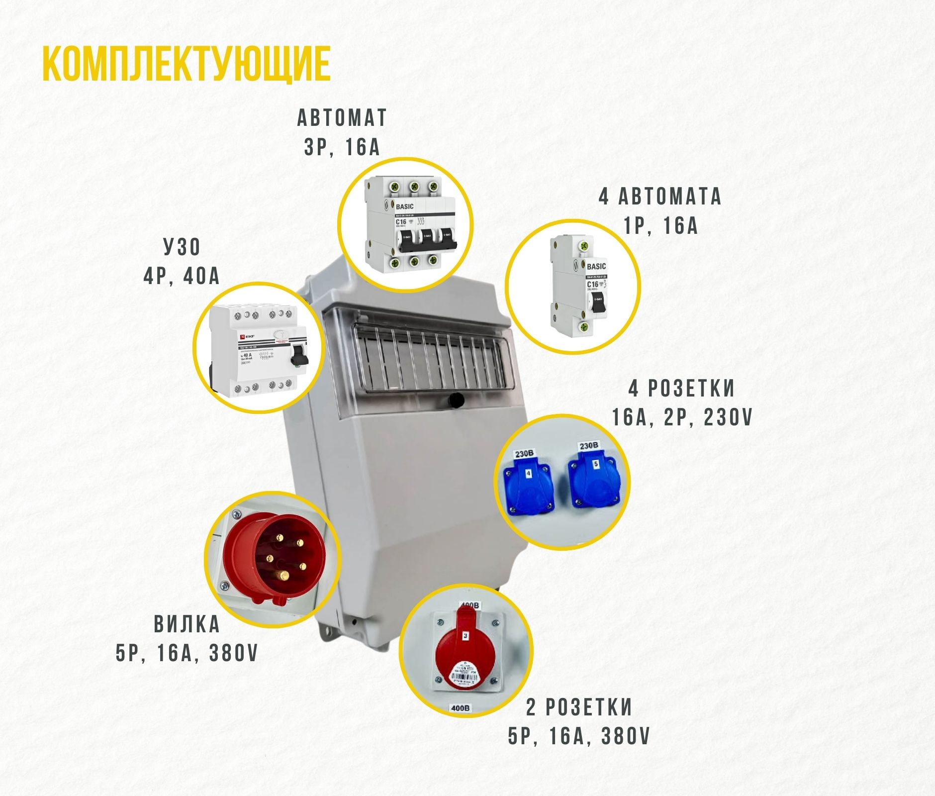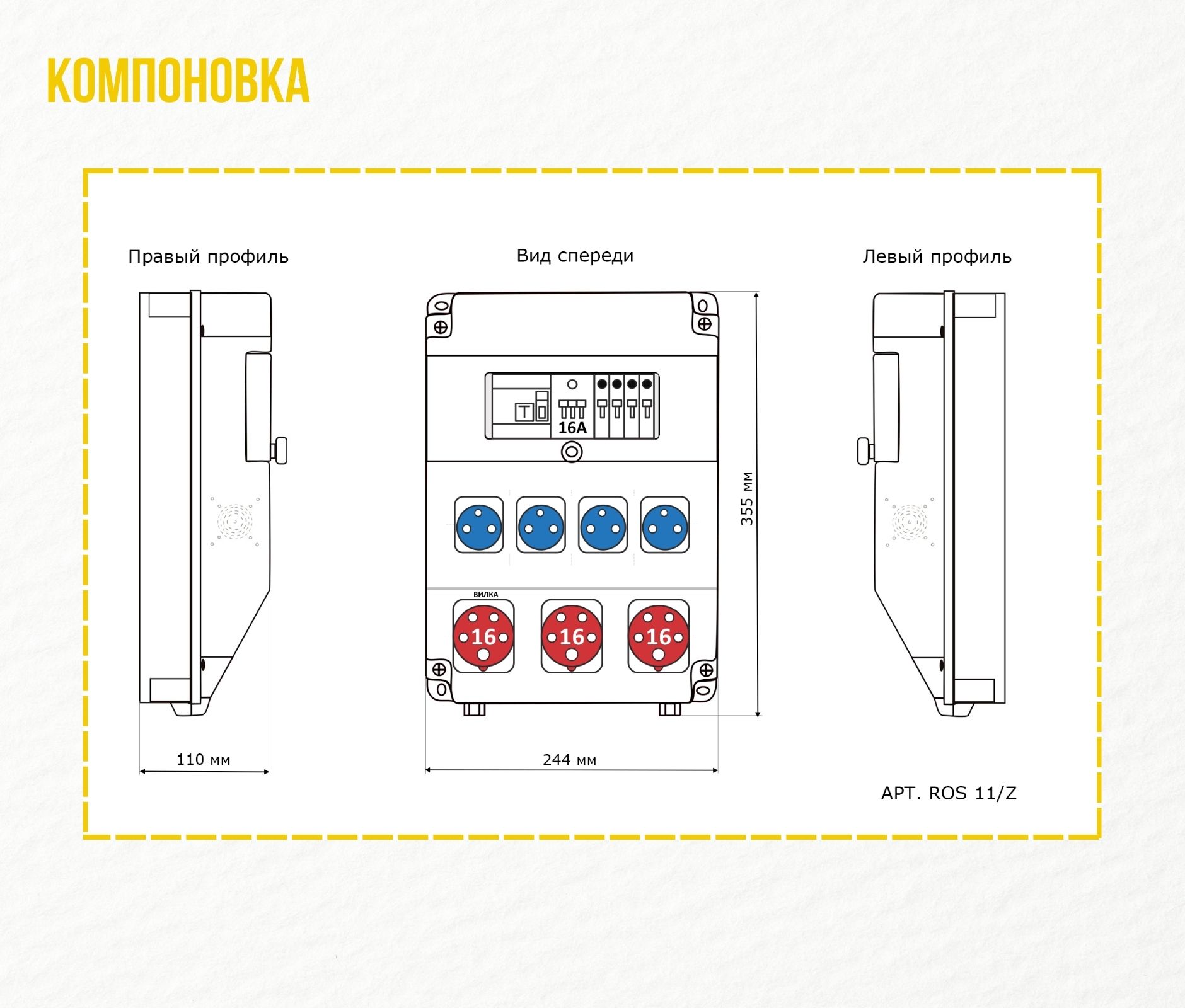 Бокс комбинированный ROS 11 AB/CFI/EK-288 с разъемами и устройствами защиты ROS 11/Z*1, IRRN 1653*1, IERN 1653*2, VZ 16S*4, elcb-4-40-30-em-pro*1, mcb4729-3-16C*1, IP44