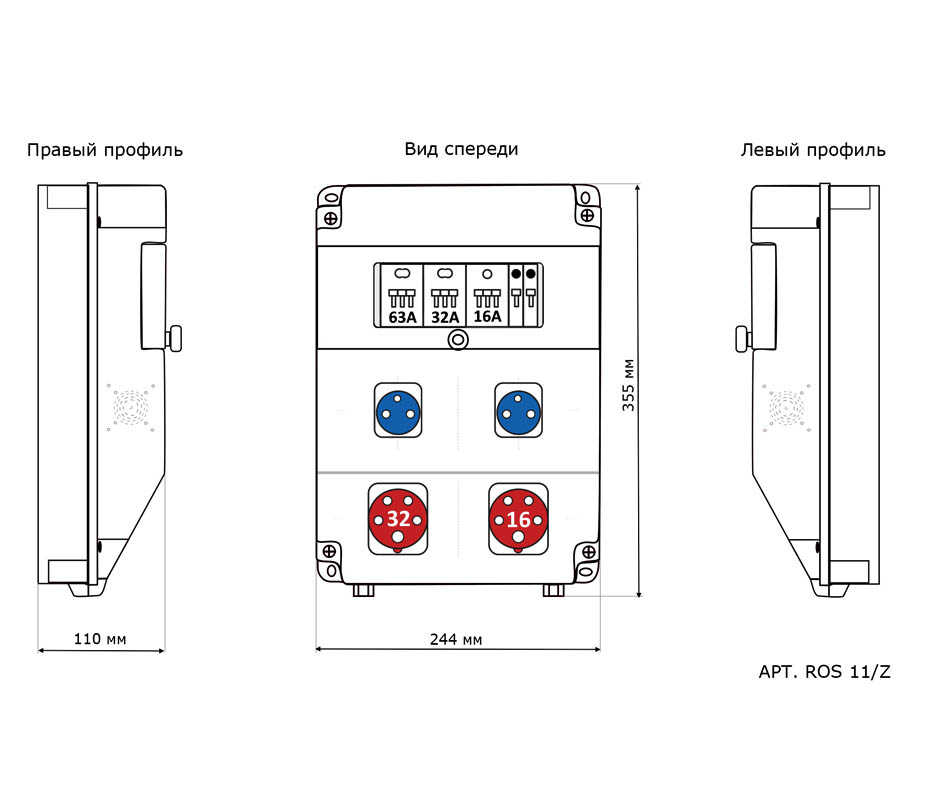 Бокс комбинированный ROS 11 AB/CFI/EK-313 с разъемами и устройствами защиты ROS 11/Z*1, IEN 3253*1, IEN 1653*1, VZ 16S*2, ВА 47-29 3P 32А*1, ВА 47-29 3P 16А*1, ВА 47-29 1P 16А*2, IVN 3253*1, КГ 5*4*3, IP44