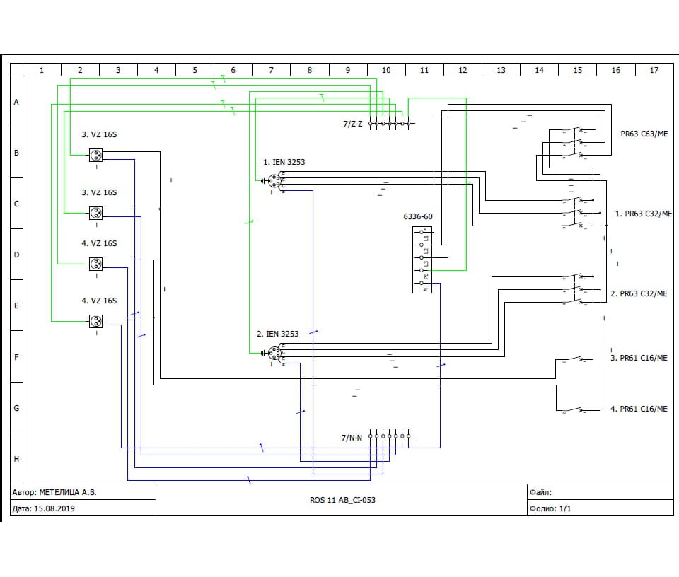Бокс комбинированный ROS 11 AB/CI-053 с разъемами и устройствами защиты ROS 11/Z*1, IEN 3253*2, VZ 16S*4, PR63 C32/ME*2, PR63 C63/ME*1, PR61 C16/ME*2, IP44