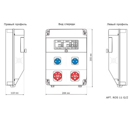 Бокс комбинированный ROS 11 AB/GFI/EK-325 с разъемами и устройствами защиты ROS 11G/Z*1, IEG 3253*2, BS1-1402-7410*2, MAD22-6-032-C-30*2, MAD22-5-016-C-30*1, MVD12-1-016-C-030*1, IP65