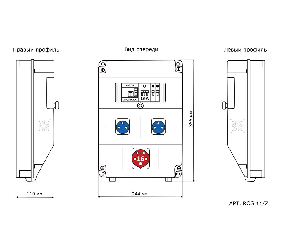 Бокс комбинированный ROS 11 AB/GFI/EK-330 с разъемами и устройствами защиты ROS 11G/Z*1, IEG 1653*1, BS1-1402-7410*2, MAD22-6-025-C-30*1, ВА 47-29 3P 16A*1, ВА 47-29 1P 16A*2, IP67
