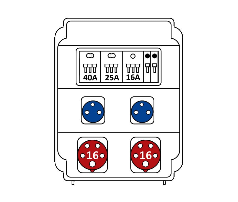 Бокс комбинированный ROS 11 AB/GI-149 с разъемами и устройствами защиты ROS 11G/Z*1, IEG 1653*2, VZG 16S*2, PR63 C40/ME*1, PR63 C25/ME*1, PR63 C16/ME*1, PR61 C25/ME*1, PR61 C16/ME*1, IP65