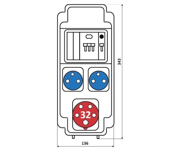 Бокс комбинированный ROS 6 AB/CI-009 с разъемами и устройствами защиты ROS 5/Z*1, IEN 3253*1, VZ 16S*2, PR63 C32/ME*1, PR61 C16/ME*1, IP44