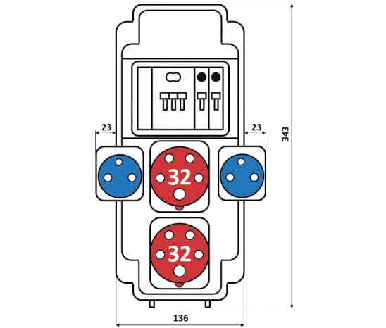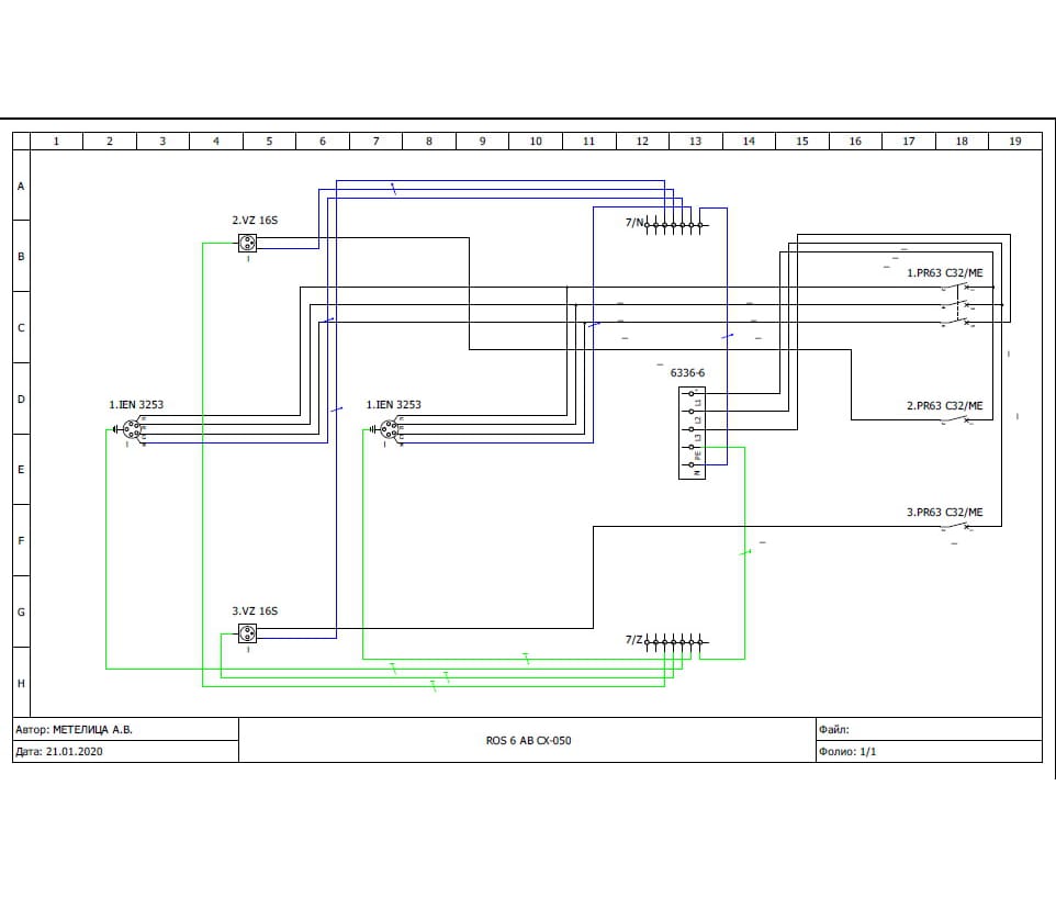 Бокс комбинированный ROS 6 AB/CI-057 с разъемами и устройствами защиты ROS 5/Z*1, IEN 3253*2, VZ 16S*2, PR63 C32/ME*1, PR61 C16/ME*2, IP44