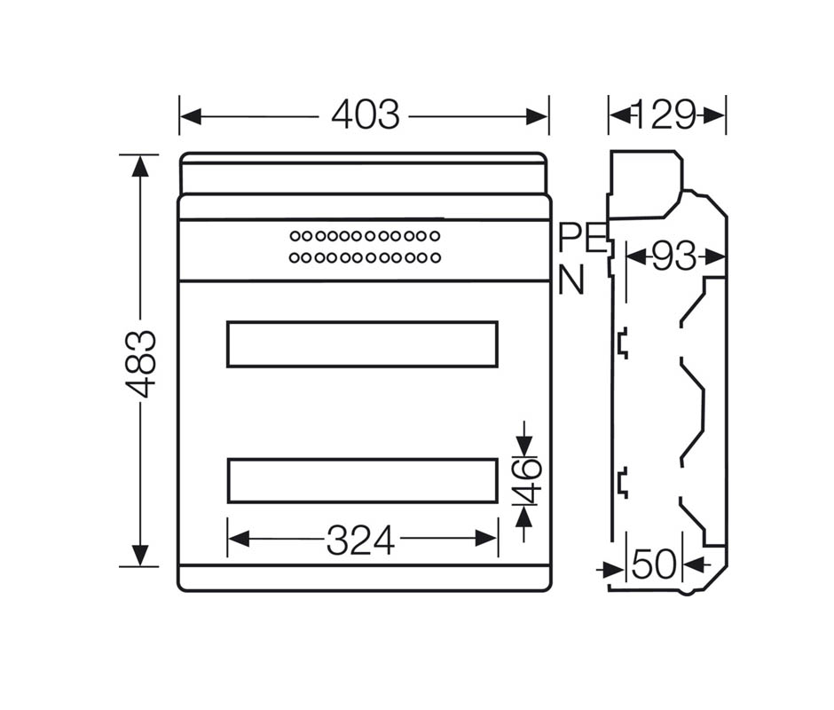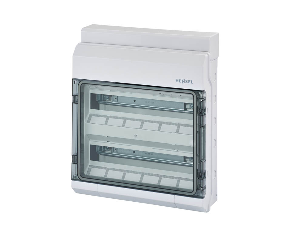 Распределительная коробка KV 2536 с прозрачной крышкой. Габаритные размеры корпуса 403х483х129 (ШxВxГ). Материал полистирол, цвет серый, IP54.
