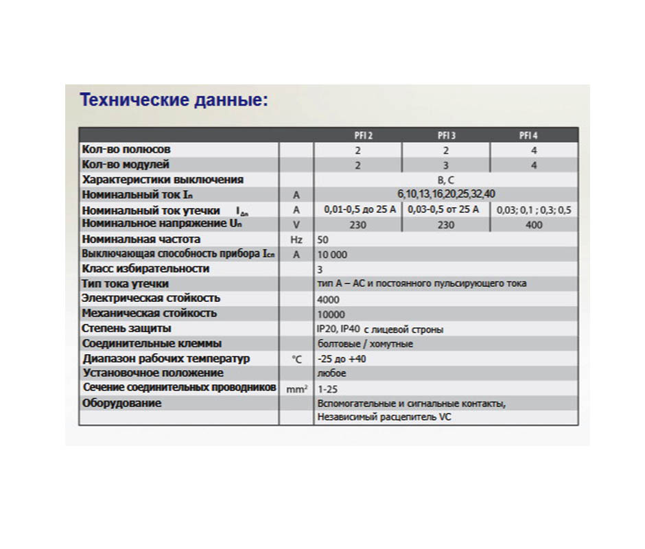 Дифференциальный автомат PFI2 16/0,03/C 2 полюса, 16 A, 10 kA, утечка тока 30 mA, с характеристикой C