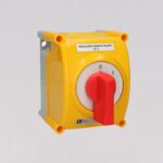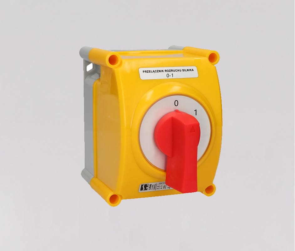 Выключатель LK16R-1.825\OB2C схема 0-1, 1-полюсный, 16А, в корпусе, IP65, жёлто-красная ручка