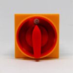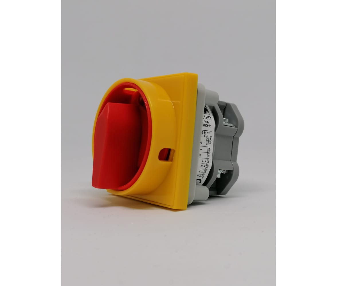 Выключатель LK16R-1.828\P08 схема 0-1, 2-полюсный, 16А, крепление на панель, IP65, жёлто-красная ручка