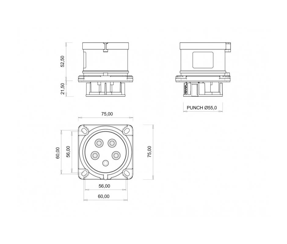 Вилка BCS-3505-2114 встраиваемая 32А, 5P(3P+PE+N, 380V-450V), IP44, черная