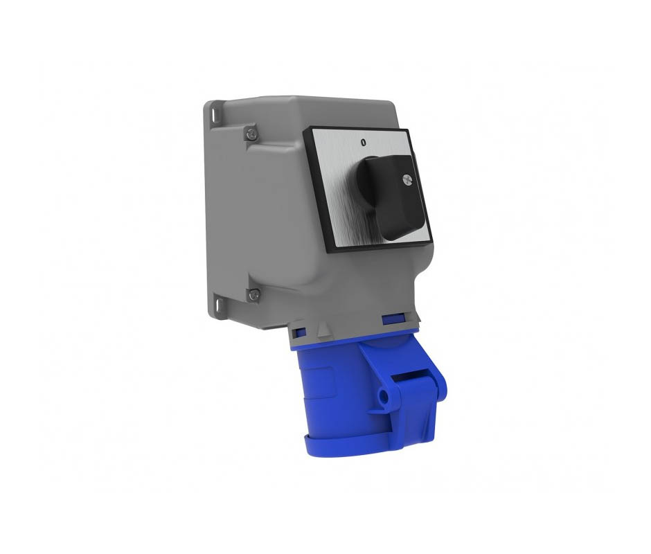 Розетка BC1-3403-2550 настенная комбинированная 32A, 3P(2P+PE, 220V-250V), IP44. Установка под наклоном 90 градусов. В корпус дополнительно встроен переключатель