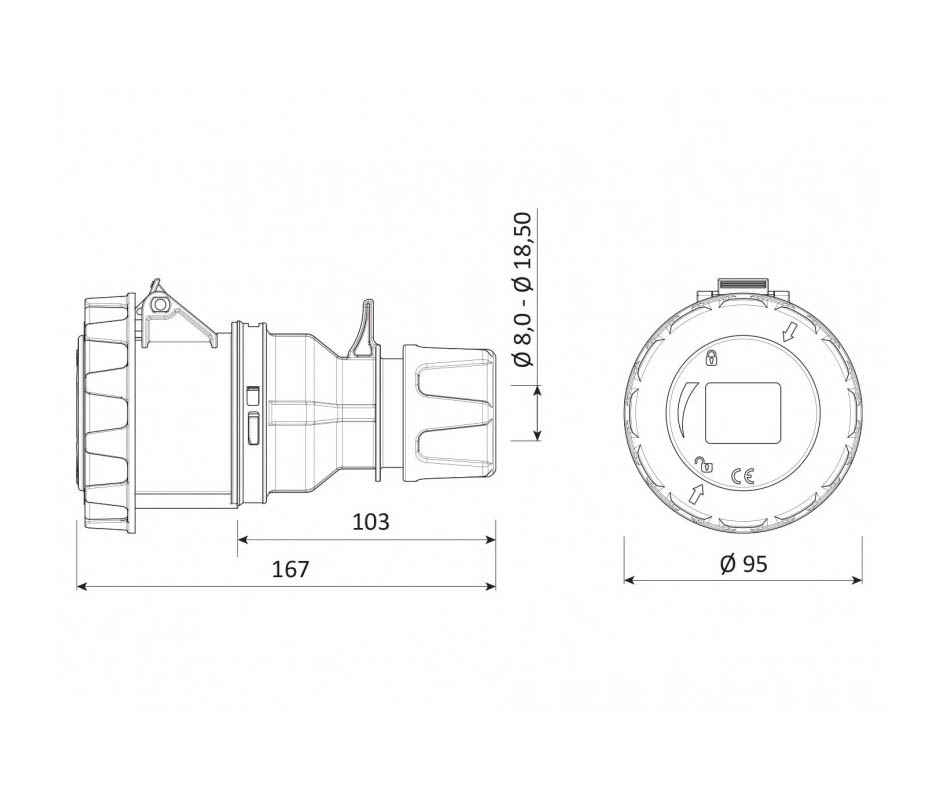 Розетка BC1-3403-7312 кабельная 32A, 3P(2P+PE, 220V-250V), IP67
