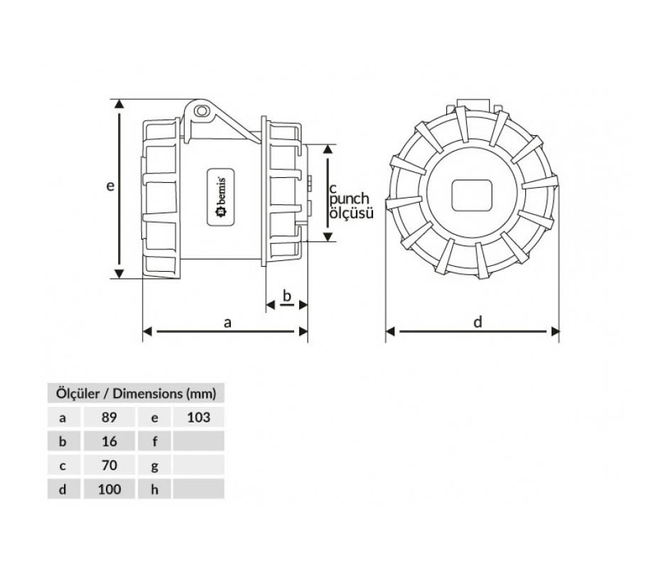 Розетка BC1-3403-7440 с гайкой 32A, 3P(2P+PE, 220V-250V), IP67
