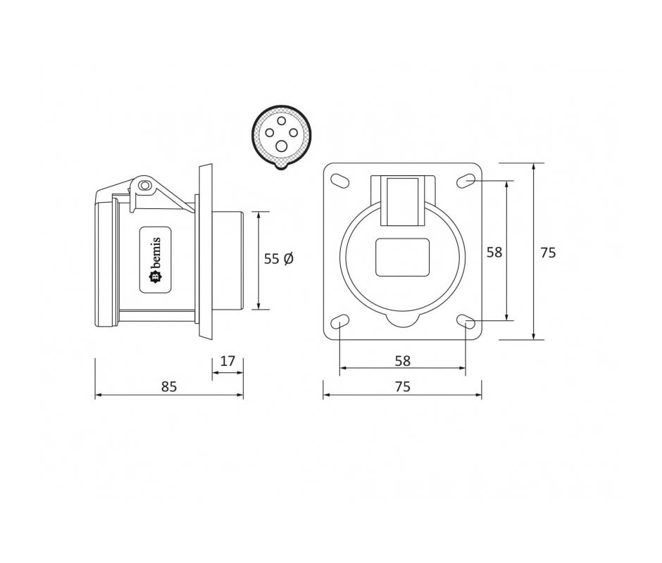 Розетка BC1-3504-2413 встраиваемая 32A, 4P(3P+PEN, 380V-450V), IP44