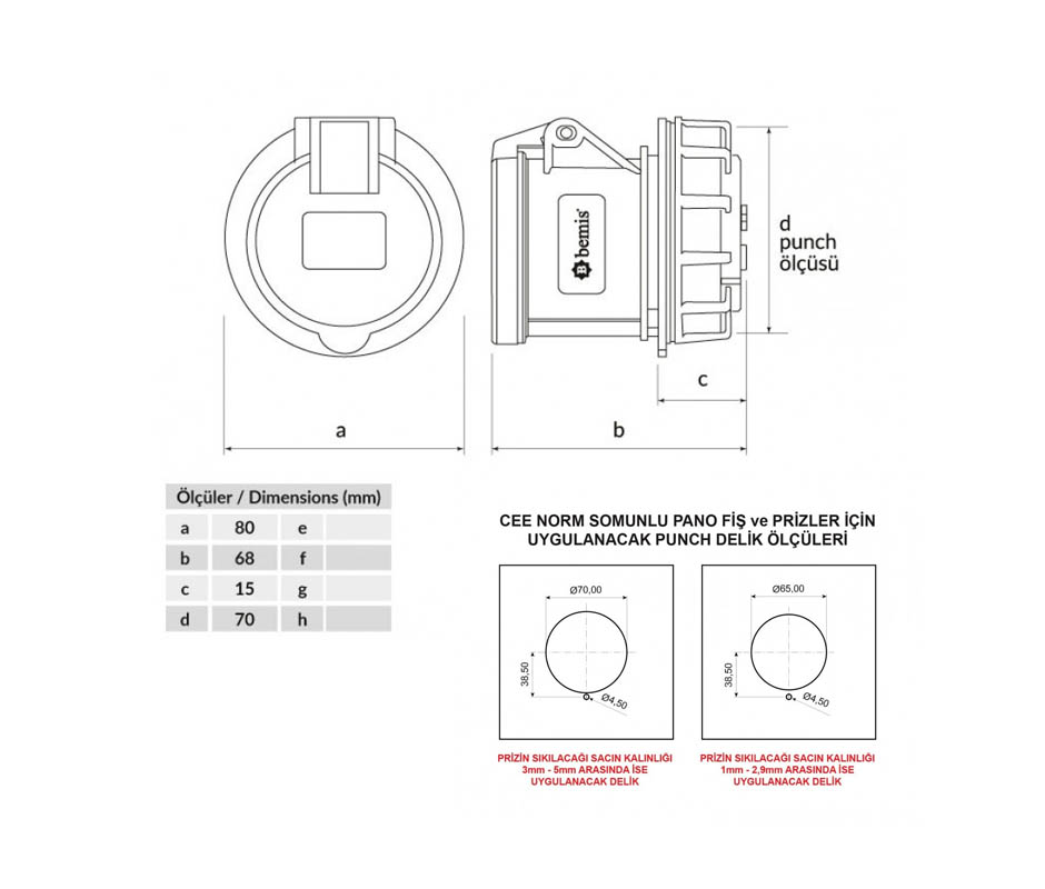 Розетка BC1-3504-2440 с гайкой 32A, 4P(3P+PEN, 380V-450V), IP44