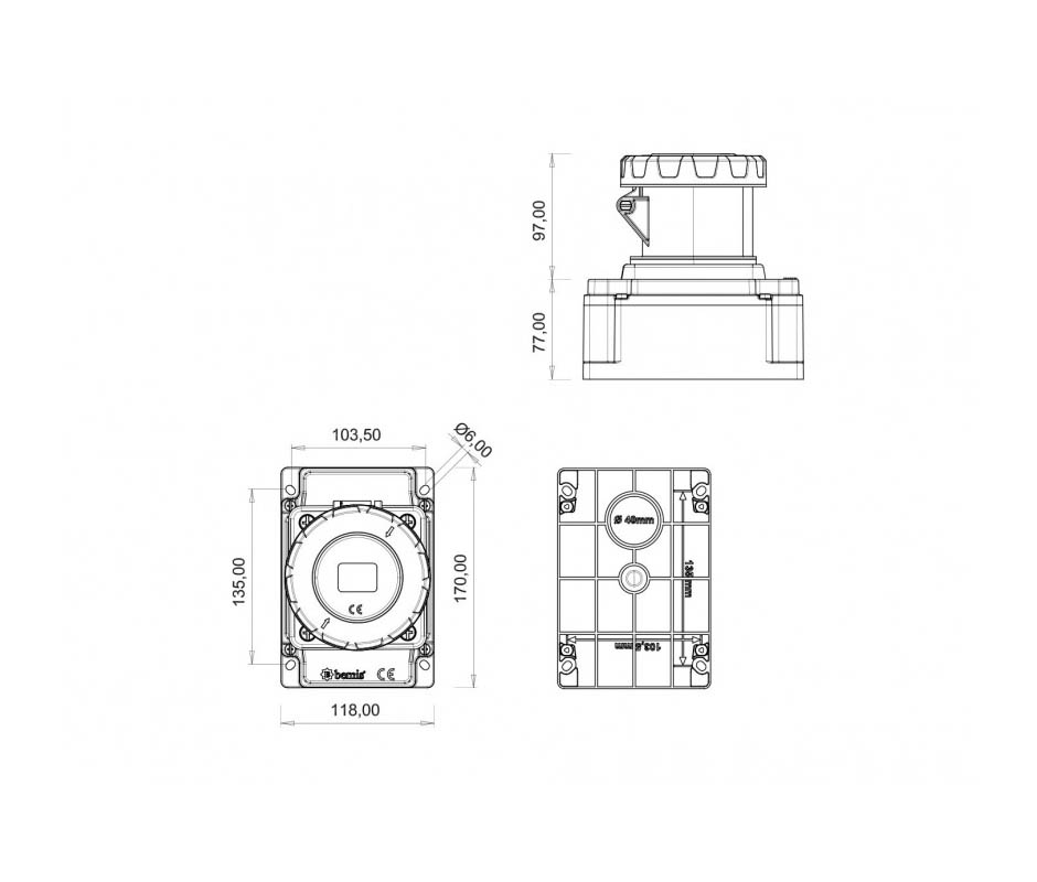 Розетка BC1-4403-7510 настенная 63A, 3P(2P+PE, 220V-250V), IP67