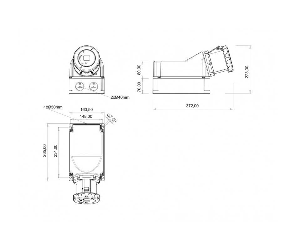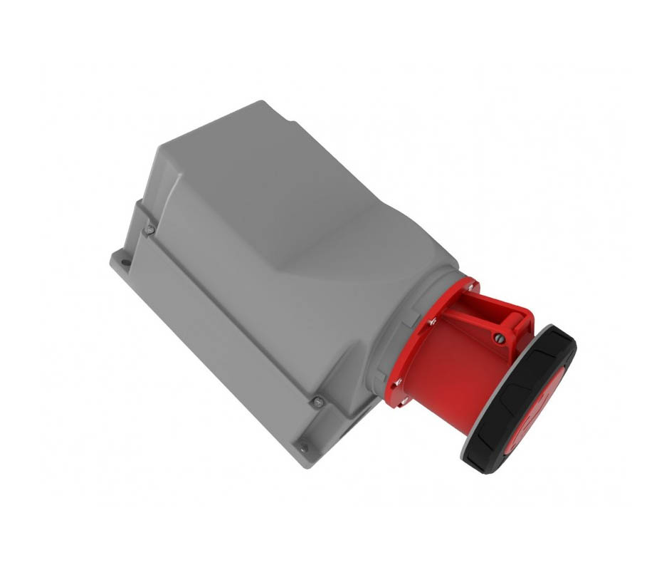 Розетка BC1-6504-7535 настенная под наклоном 125A, 4P(3P+PEN, 380V-450V), IP67. Установка под наклоном 90 градусов.