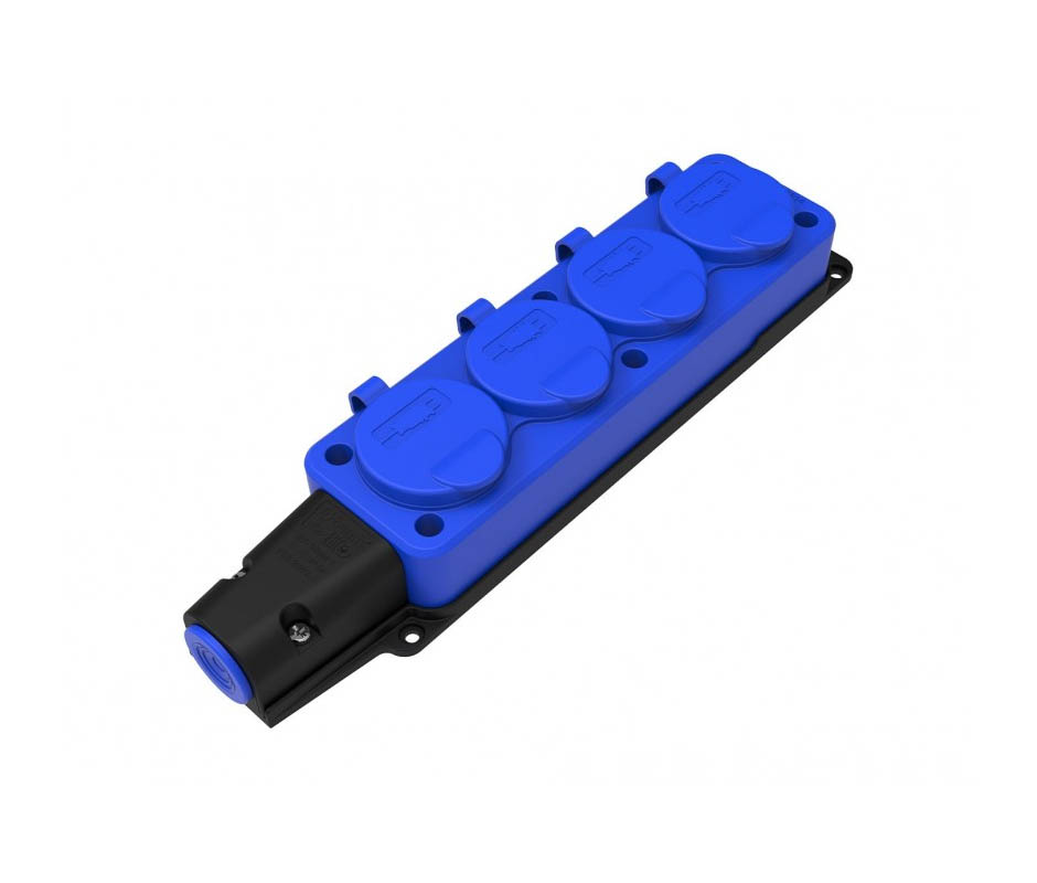 Розетка BV2-1402-3614 настенная прорезиненная на 4 разъема 16A, 3P(2P+PE, 220V-250V), IP54, синяя