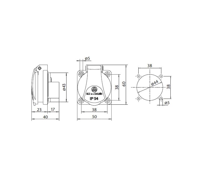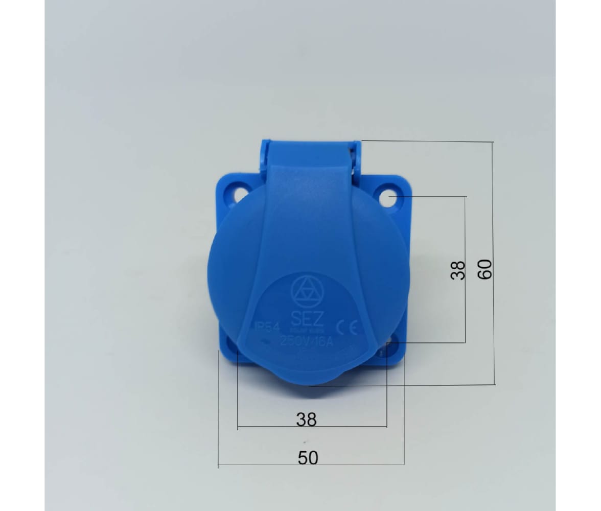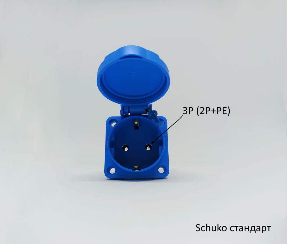 Розетка VZ 16S (M) встраиваемая, 16А, Schuko(2P+PE, 220В/230В), IP54, с монтажным комплектом (крепежная рамка ND 105-2677 + 4 винта SKRUTKA KAL 4,0×16)