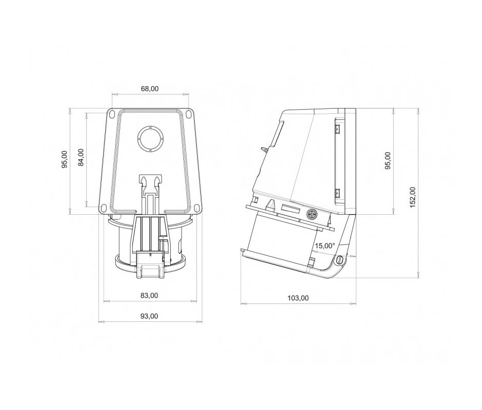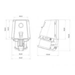 Вилка BC1-1505-2235 настенная с крышкой 16A, 5P(3P+PE+N, 380V-450V), IP44. Угол наклона 90 градусов