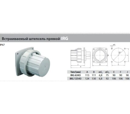Вилка IPN 3253 настенная 32А, 5P(3P+N+PE, 380В/400В), IP44