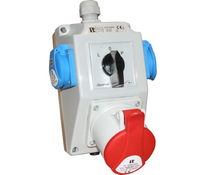 Набор монтажный ZI01\R461 в составе: (Переключатель LK32A — L-O-P, розетка 32А, 3P+N+PE), сальник пластмассовый 25×1,5, IP44