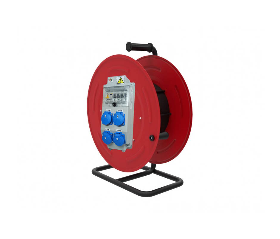Удлинитель УНК-Б001-М3-50 на металлической катушке с боксом комбинированным (в составе бокса: ROS 5/Z*1, VZ 16S*4, MAD22-5-025-C-30*1, PR61 C16/ME*4), кабель КГ 3*2,5 50 м., IP44