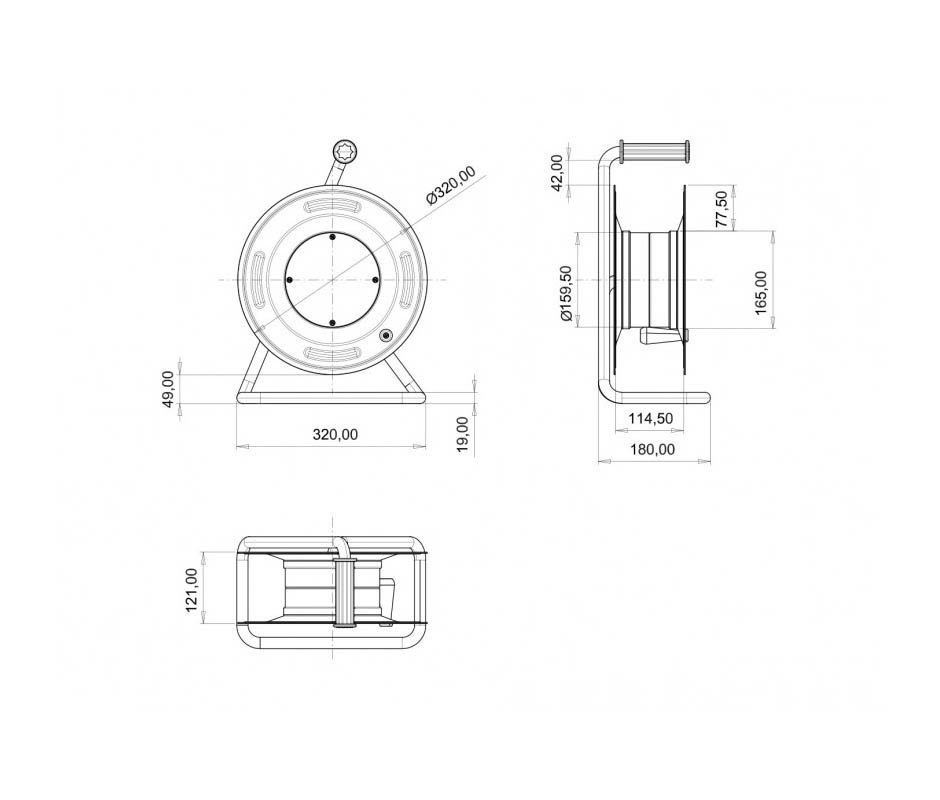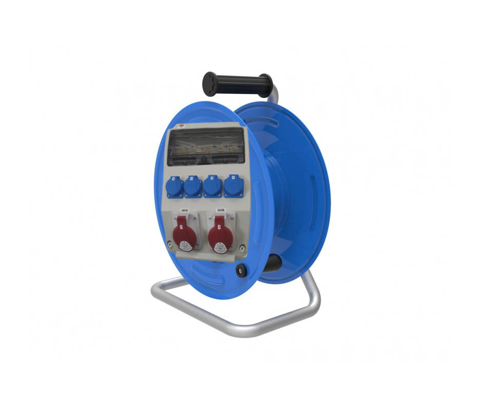 Удлинитель УНК-Б004-М5-30 на металлической катушке с боксом комбинированным (в составе бокса: ROS 5/Z*1, 3959*1, IEN 3253*2, VZ 16S*4, MAD22-6-032-C-30 *2, MAD22-5-016-C-30*2, ), кабель КГ 5*4 30 м., IP44