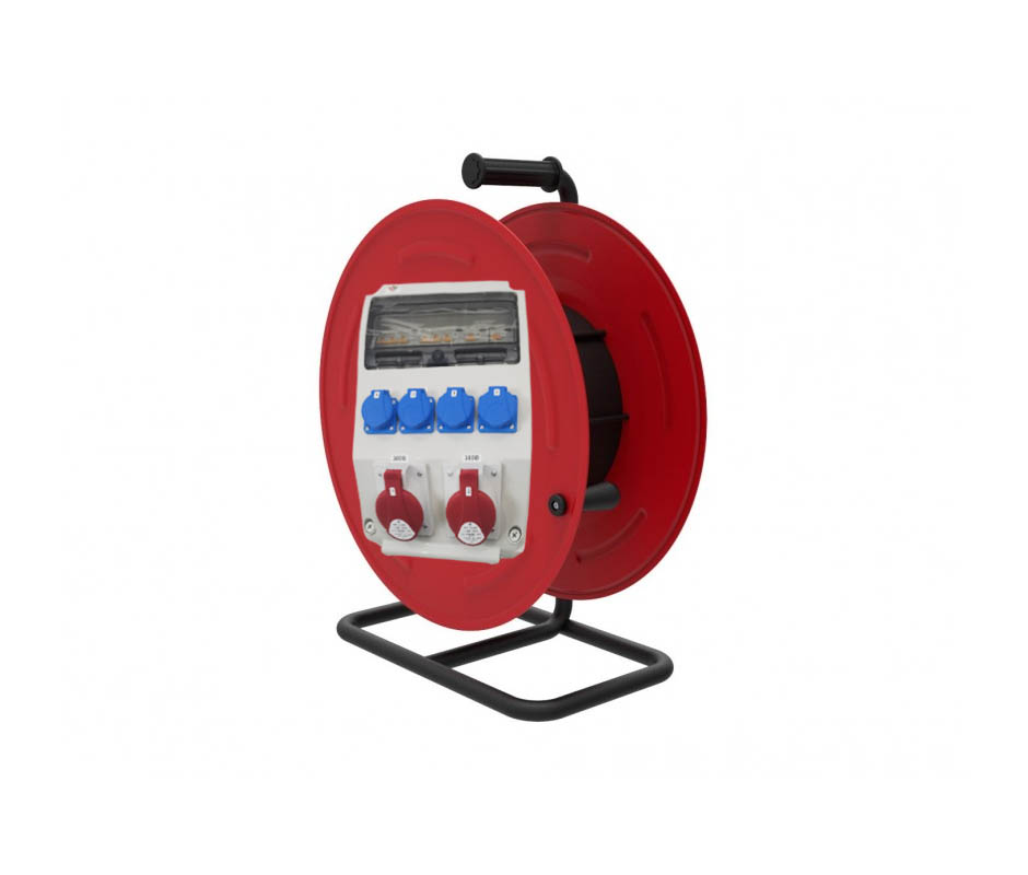 Удлинитель УНК-Б004-М5-50 на металлической катушке с боксом комбинированным (в составе бокса: ROS 5/Z*1, 3959*1, IEN 3253*2, VZ 16S*4, MAD22-6-032-C-30 *2, MAD22-5-016-C-30*2, ), кабель КГ 5*4 50 м., IP44