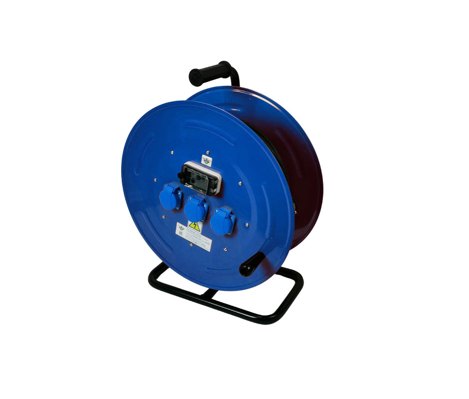 Удлинитель УНК-З001-М3-30 на металлической катушке в составе: Д/А 16А 2П 30 мА, розетки 220В Schuko 3шт., кабель КГ 3*2,5 30 м., IP44